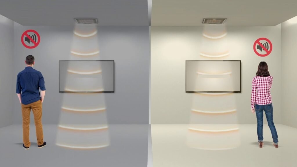 O Audio Spotlight é uma nova tecnologia de áudio revolucionária que cria som em um feixe estreito, assim como a luz. Aponte o painel de alto-falante plano e fino para a área de audição desejada e forneça todo o som e nenhum ruído.™ Desde 2000, milhares de sistemas Audio Spotlight foram instalados em uma ampla gama de aplicações em todo o mundo. De museus , exibições, quiosques e sinalização digital a lojas de varejo e projetos especiais, centenas de empresas escolheram essa tecnologia exclusiva e patenteada para fornecer som controlado com precisão e alta qualidade, preservando o silêncio.